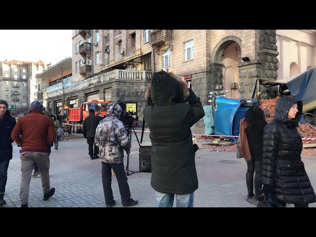 Вранці в п'ятницю, 22 лютого, в центрі Києва на Хрещатику вантажівка, навантажена цеглою, скотилася по сходах із вулиці Лютеранської та перекинулася. Інцидент стався близько 06:20. Вантажівка була повністю завантажена цеглою, проте обійшлося без постраждалих.