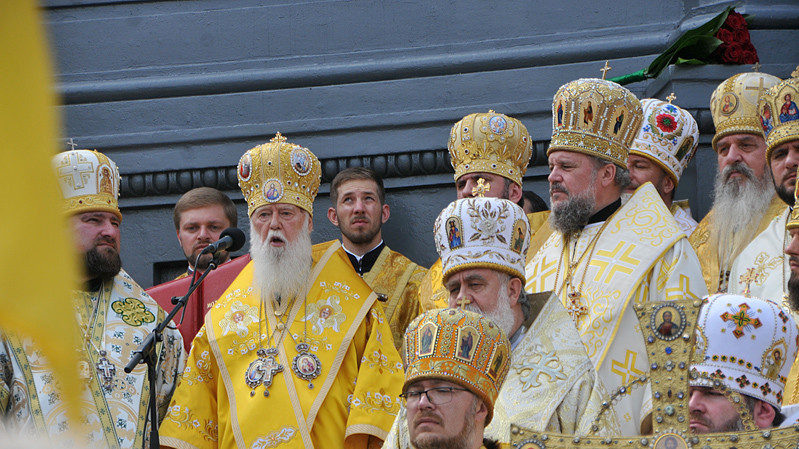 Київський патріарх Філарет та інші священнослужителі помолилися за Україну і за те, щоб країн "вистояла в боротьбі з тими, хто хоче її зруйнувати і захопити її землі".