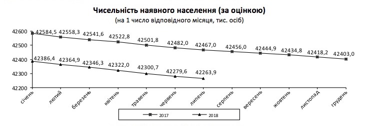 Чисельність наявного населення в Україні за оцінкою на 1 липня становила 42 мільйони 263,9 тисяч осіб. Як повідомляє у п'ятницю, 17 серпня, Державна служба статистики України, упродовж січня–червня цього року чисельність населення зменшилася на понад 122 тисячі осіб. Кількость померлих суттєво перевищує кількість живонароджених.