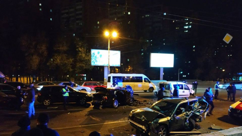 В результаті 10 зіткнення легкових автомобілів у Дніпрі постраждали як мінімум троэ людей. Масова ДТП сталася на перетині Запорізького шосе та вулиці Космічної близько 20:00 понеділка, 19 листопада.