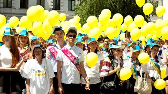 На площі Героїв Майдану випускники запустили в небо національні повітряні кульки, як символ віри в Україну, миру на нашій землі і віри в щасливе майбутнє. !zn