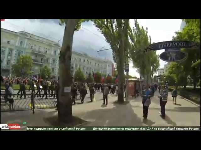 За словами видання, не менше 10-ти тисяч мешканців з усіх міст і районів "республіки" зібралися на центральній вулиці Донецька, щоб пройти парадною колоною з прапорами і прапорами з символікою "ДНР".