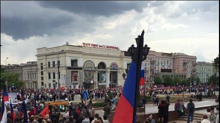 Однак журналіст Олексій Мацука зазначає, що керівники підприємств Донецька отримали від бойовиків вказівку примусово вивести людей на святкування річниці референдуму".