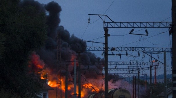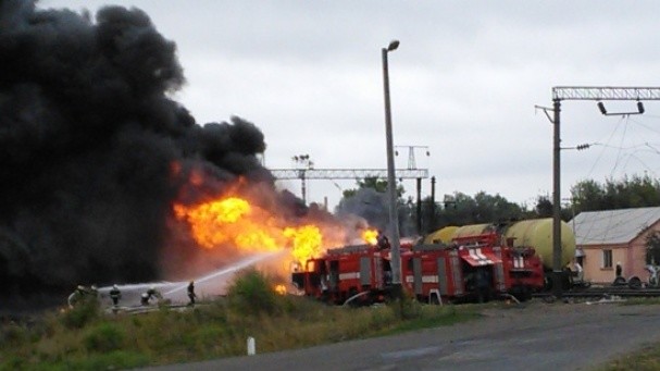 У п'ятницю о шостій ранку на залізничному переїзді у райцентрі Городище Черкаської області зійшов з рейок складу вантажних потягів з нафтопродуктами, в результаті чого один з них загорівся.