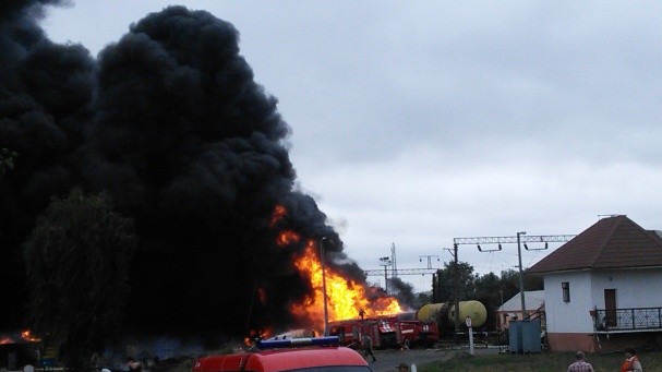 Попередньою причиною аварії називають те, що вагон з пальним зійшов з рейок.
