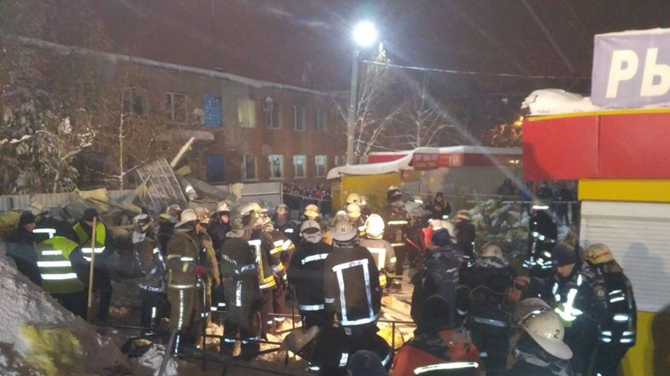 За попередньою інформацією, дах недобудованого павільйону на Московському проспекті, 266 обвалився під вагою снігу. Жінки, які опинилися під завалами, проходили в цей момент повз будови.