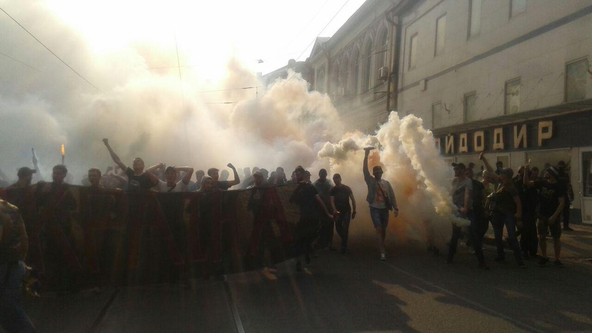 Під час ходи вони виконали знамениту "Путін - ***! Ла-ла-ла-ла-ла-ла-ла-ла!" та інші кричалки, а також пісні "Воины света" і "Червона рута". Марш супроводжувався використанням піротехніки.