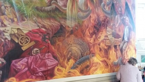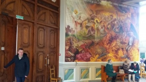 У Червонограді Львівської області на стіні одного з храмів Української греко-католицької церкви зробили фреску з символікою нацистського та комуністичного режимів, а також людиною, яка схожа на президента РФ Володимира Путіна, що горить у пекельному полум'ї.