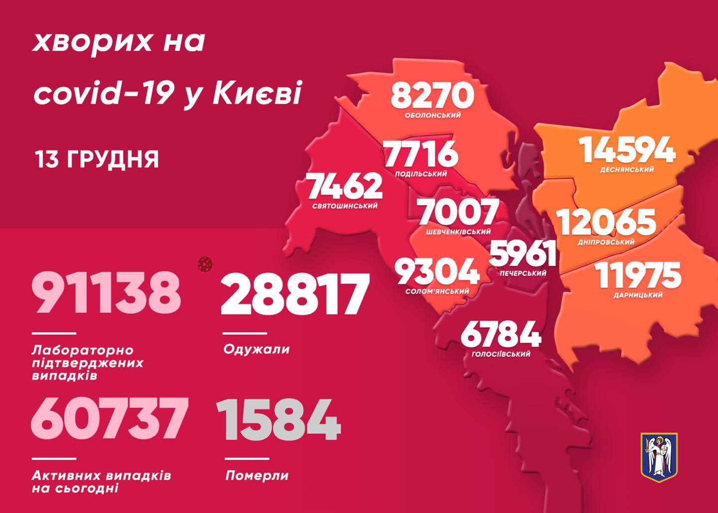 За його словами, всього коронавірус забрав життя 1584 киян. Підтверджених випадків захворювання COVID-19 на сьогодні в столиці вже 91 138.