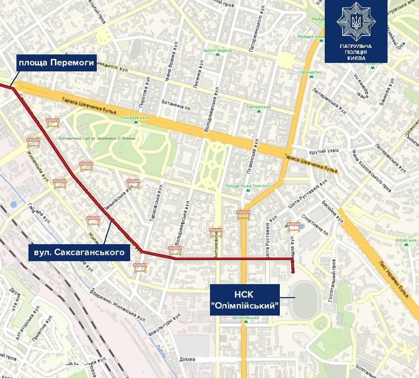 Також рух транспорту буде обмежено на частинах вулиць, прилеглих до маршруту: