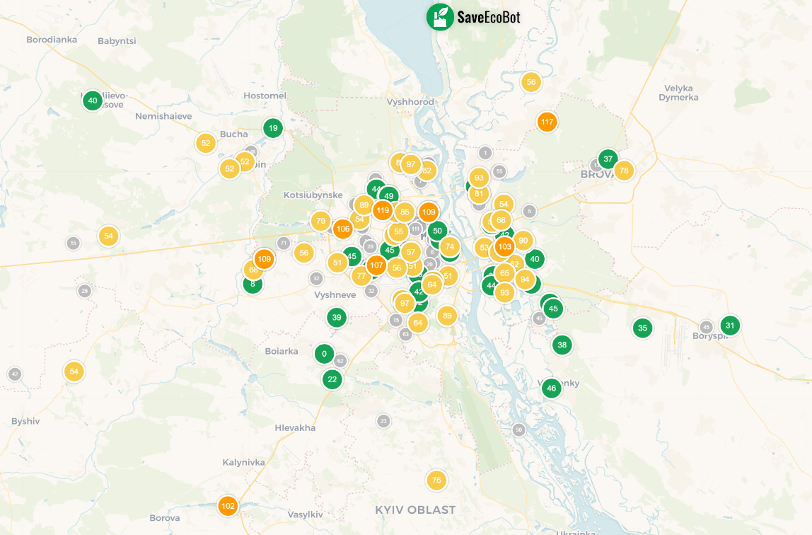Загалом станом на 08:00 3 вересня рівень забрудненості атмосферного повітря в Києві середній, радіаційний фон у місті в нормі.