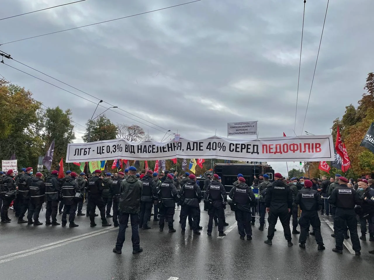 Під час маршу у парку Шевченка в Києві зібралося близько сотні противників заходу, зокрема, представники організації "Традиції і порядок", "Правий сектор", "Християнський фронт" і ряду інших. Вони вимагали захистити "традиційні сімейні цінності".