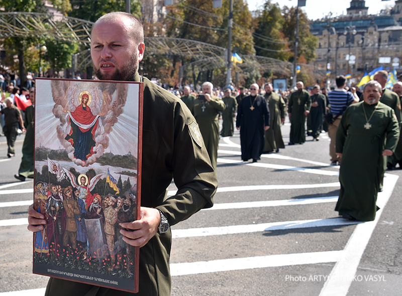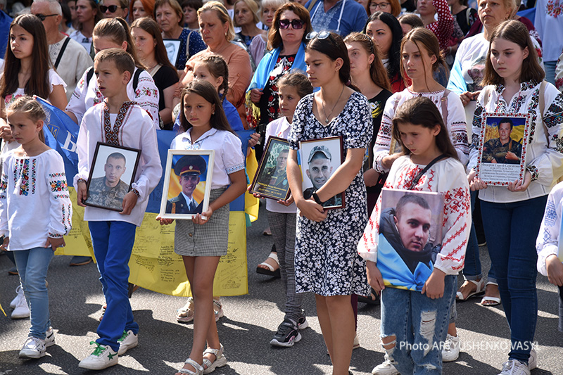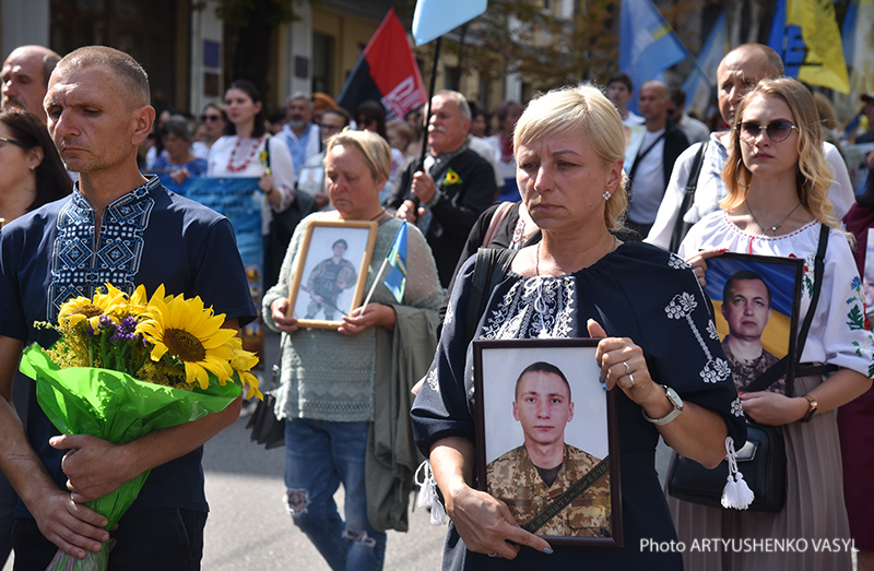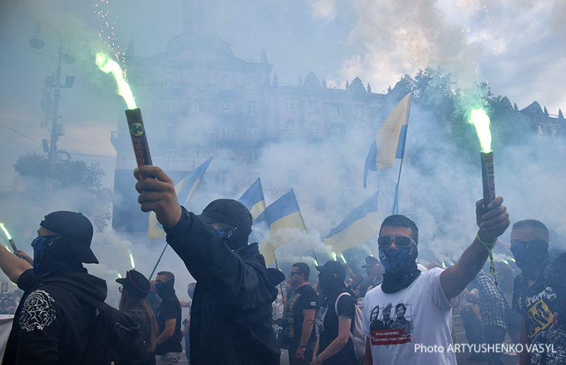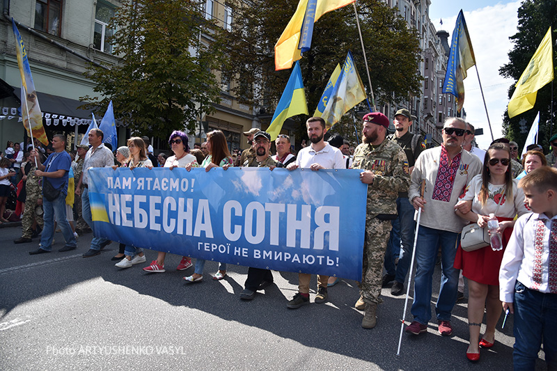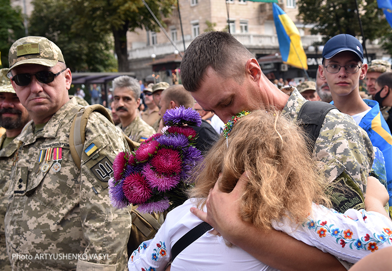 У вівторок, 24 серпня, ветерани війни на Донбасі, їх рідні і близькі, а також волонтери вийшли на Марш захисників України. Кілька тисяч людей з портретами, плакатами, фаєрами і прапорами пройшли центром Києва, від парку Шевченка до Майдану Незалежності, в супроводі поліції.