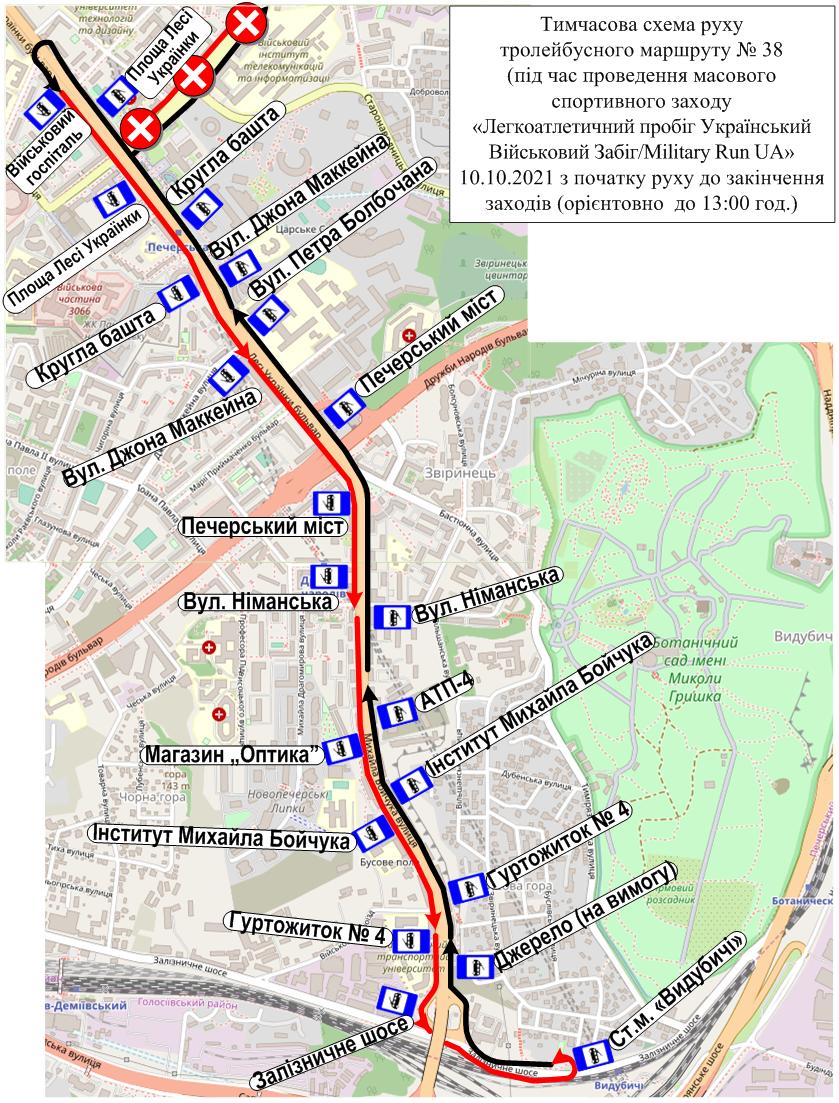 Як повідомляє КП «Київпастранс», буде змінено маршрути тролейбусів № 38 та автобусів № 24, 55, 62.