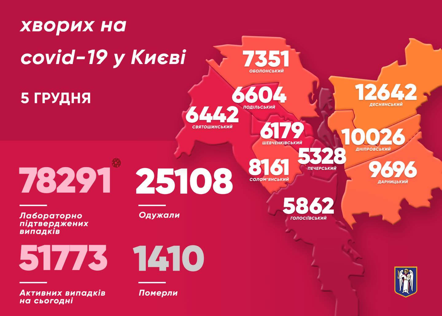 "1 541 хворого коронавірусом зафіксували в столиці за минулу добу. Померли 15 осіб. Всього коронавірус забрав життя 1 410 киян. Підтверджених випадків захворювання на сьогодні вже 78 291", - йдеться в повідомленні.