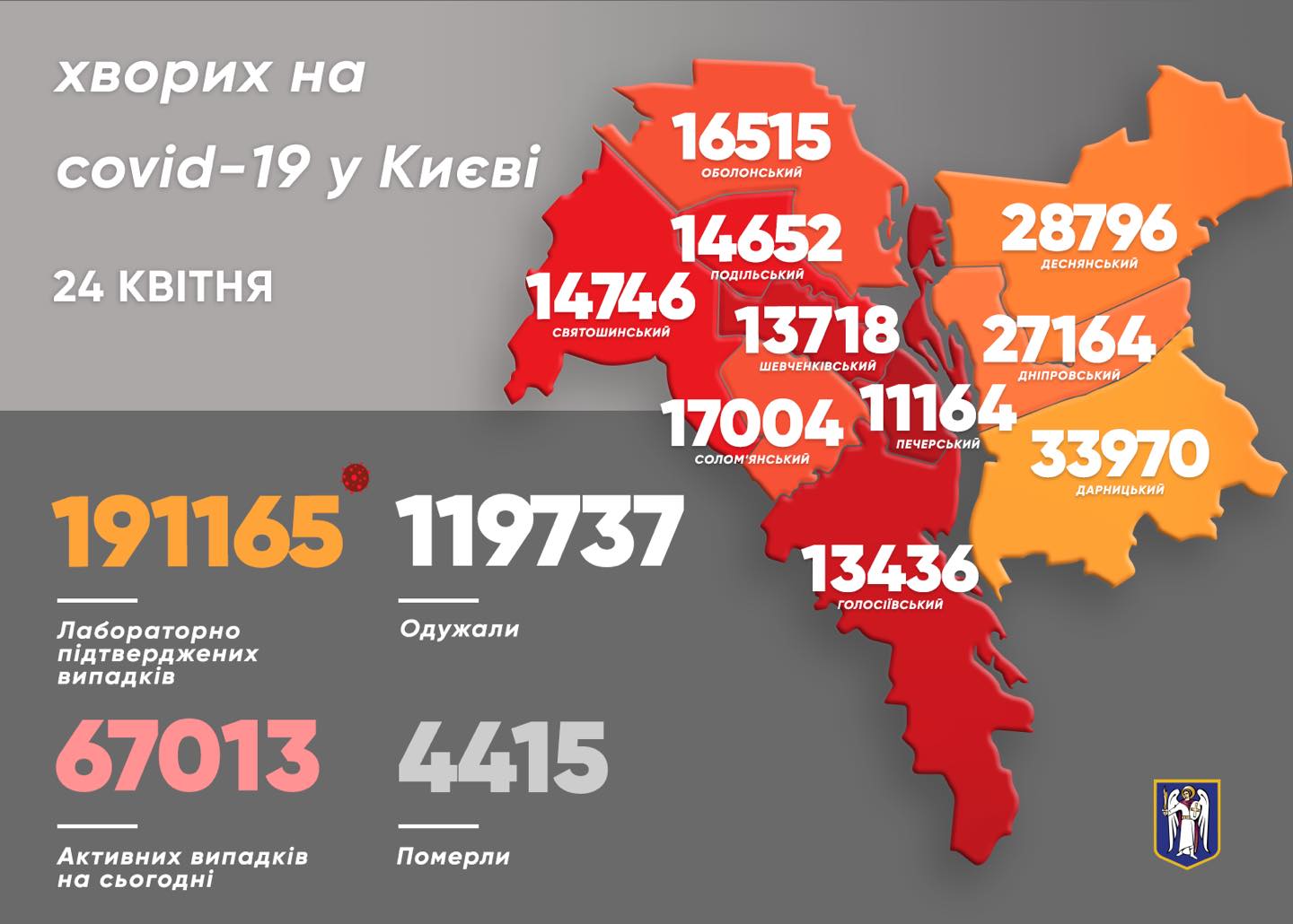За минулу добу зареєстрували 29 летальних випадків від вірусу (всього 4415). Госпіталізовано 87 хворих COVID-19, 334 людини госпіталізовані з підозрою на COVID-19 і пневмоніями.