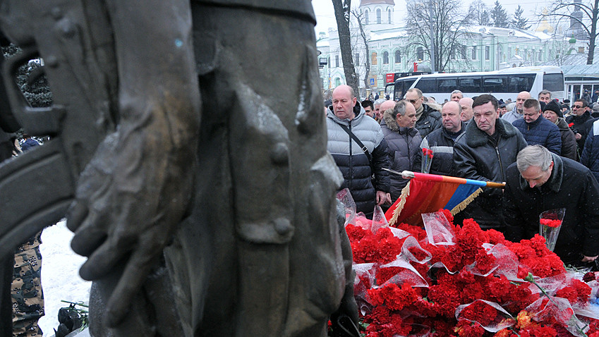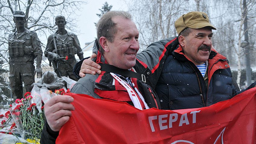 У Києві до пам'ятника воїнам-афганцям у день виведення радянських військ з Афганістану прийшли з квітами ветерани радянської інтервенції в пам'ять про тих, хто не повернувся "з-за річки". Тут традиційно зустрілися бойові побратими, а також родичі тих, хто вже не зможе прийти на зустріч. Біля пам'ятника священнослужителі провели панахиду по всіх загиблих у військових діях в Афганістані. "У цієї дати для нас подвійний сенс. По-перше, ми всі раді, що закінчилася афганська війна. З іншого боку, ми сумуємо за загиблими нашим побратимам. В "афганському" співтоваристві все частіше звучить питання, що необхідне нам в Україні ще одне свято, і дуже швидко – свято закінчення війни на Сході, бо гинуть наші діти, наші брати", - сказав голова Українського союзу ветеранів Афганістану Сергій Червонопиский.