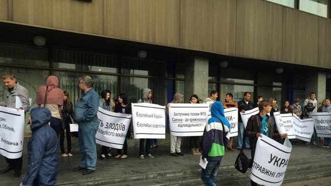 "В готелі 10:00 розпочалися збори ради профспілок України, на яких планують обрати голову профспілок України. Під будівлею готелю зібралися декілька сотень активістів, обурених намірами опричників старого режиму обрати тих, хто причетний до розбазарювання майна профспілок", - написав Мельниченко.