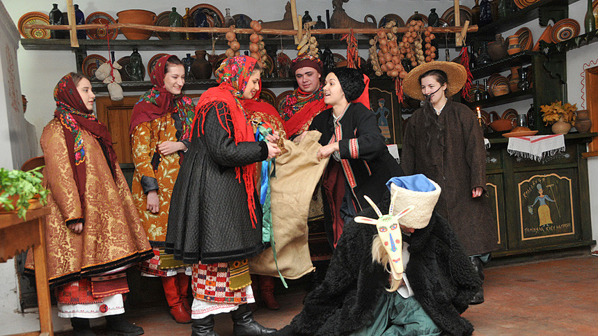 У київському музеї під відкритим небом "Мамаєва Слобода" відбулася генеральна репетиція святкування Щедрого вечора та майстер-клас зі щедрування, де фольклорний колектив "Мамаєвої Слободи" продемонстрували давні обряди "водіння Кози" та "Маланки", а також показали, як колись щедрували у козацькій Наддніпрянщині: якими стравами та напоями у цей святковий вечір наші прадіди частували ватаги щедрувальників (багата кутя, сальтисон, домашня ковбаса, кров"янка, пироги з різними начинками, усілякі вареники, гречаники, книші, шулики, калачі, узвар,хмільні наливки...)