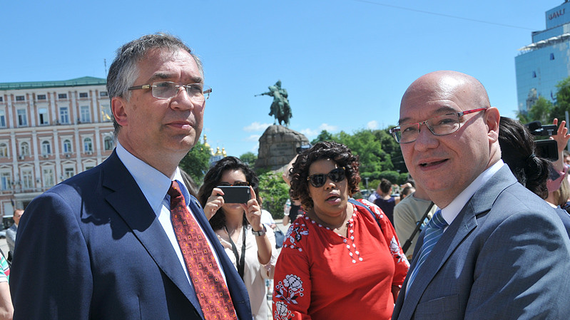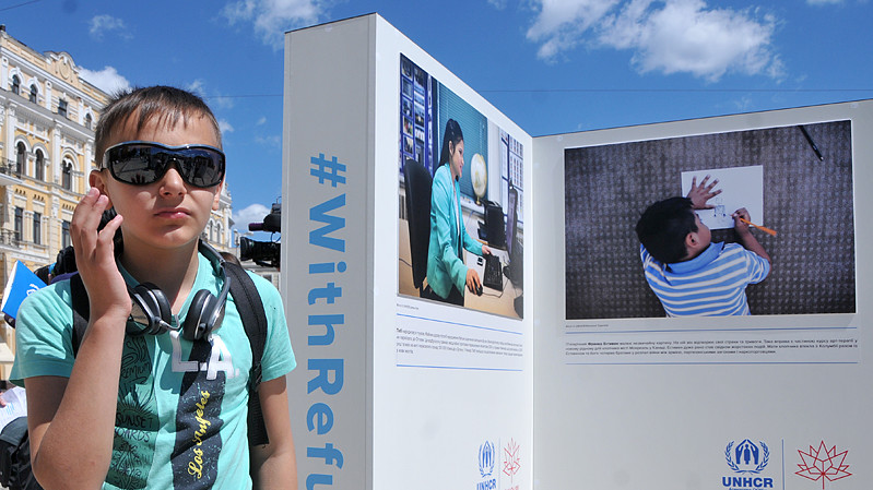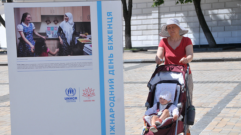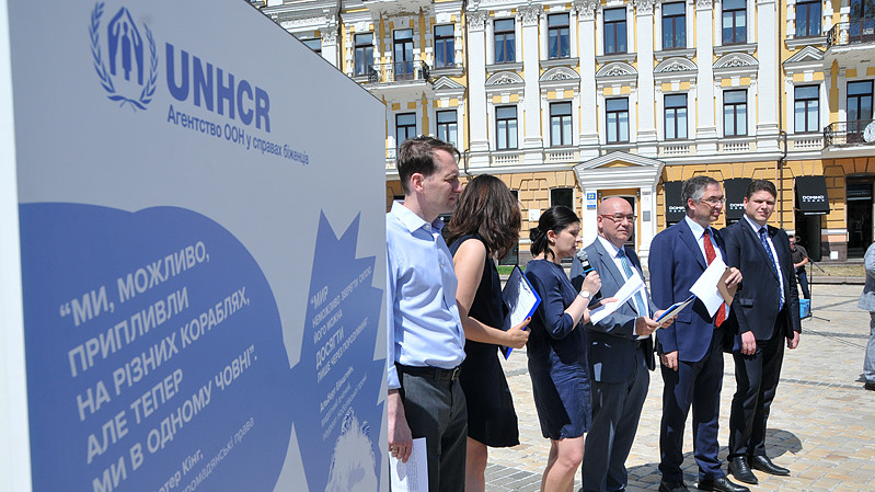 У Києві на Софійській площі відбувся медіа-брифінг та відкриття фотовиставки з нагоди Міжнародного дня біженця. Організували виставку Агенство ООН у справах біженців спільно з посольством Канади та партнерською організацією "Право на захист". В заході взяли участь представник Агенства ООН у справах біженців Пабло Матеу, посол Канади в Україні Роман Ващук, голова Державної міграційної служби України Максим Соколюк, директор БФ "Право на захист" Олександр Галкін, представники спільнот біженців, які проживають в Україні.
