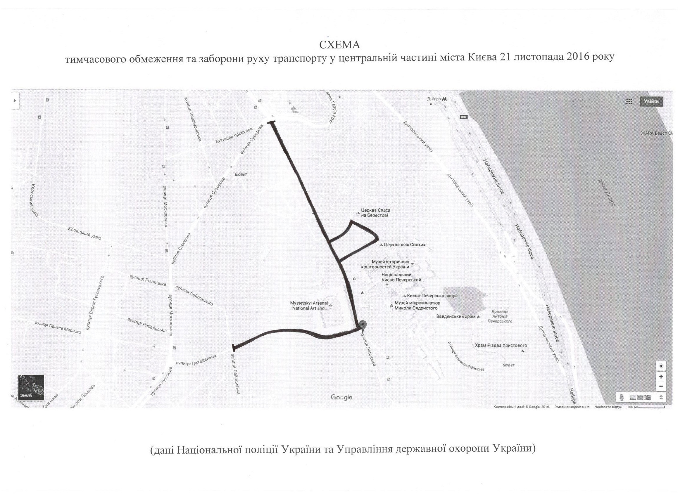 Крім того, з 06:00 до закінчення заходів буде обмежено рух транспорту на Лаврській (на відрізку від площі Слави до вул. Цитадельної), Цитадельній (на ділянці від вул. Лаврської до вул. Лейпцігській), пров. Лаврському, на Банковій (на ділянці від вул. Інститутської до вул. Круглоуніверситетської), Круглоуніверситетській (на відрізку від будинку № 11/19 на вул. Круглоуніверситетській до вул. Лютеранської), Лютеранської (на ділянці від вул. Круглоуніверситетській до вул. Заньковецької), вул. Заньковецької (на ділянці від вул. Лютеранської до вул. Архітектора Городецького), вул. Інститутській (на ділянці від вул. Садової до вул. Шовковичної), вул. М. Грушевського (від Садової до пров. Кріпака).
