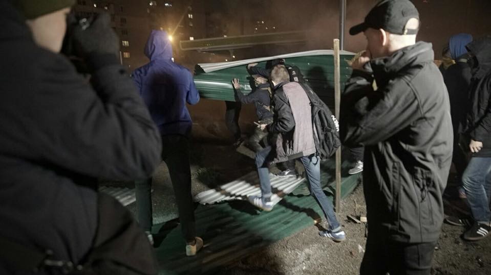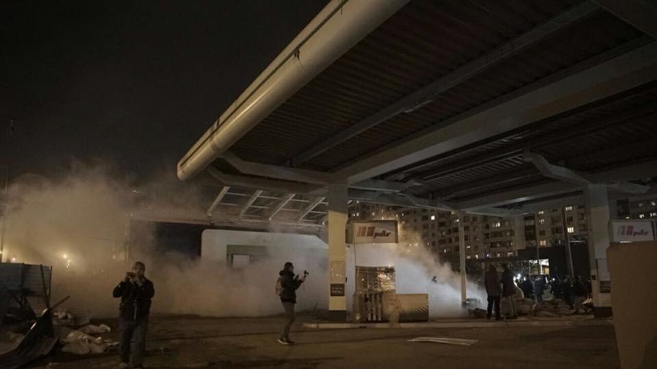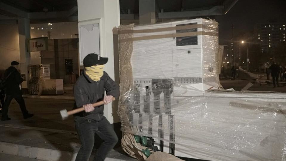 Крім того, в ході зіткнень мітингувальники частково зруйнували АЗС, а також закидали поліцейських яйцями.