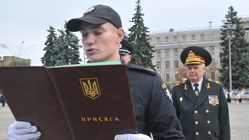У Києві на Солом'янській площі прийняли присягу Батьківщині понад 800 першокурсників Національної академії внутрішніх справ. О 10:00 навпроти Національної академії внутрішніх справ України вишикувалися наймолодші її вихованці - учні юридичного ліцею імені Ярослава Кондратьєва. Їм вручали посвідчення ліцеїста. На урочистості зібралися викладачі, курсанти, їх батьки і друзі.