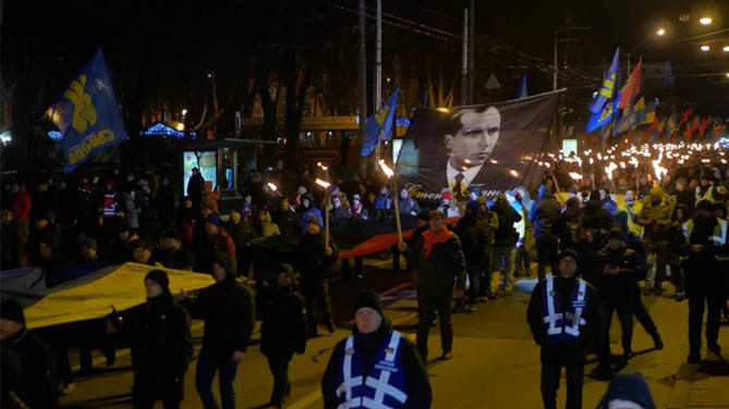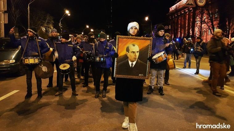 У Києві 1 січня відбулася традиційна смолоскипна хода, присвячена дню народження голови ОУН Степана Бандери. У цьому році відзначається його 111 річниця. У ході взяли участь близько 1500 осіб, передає Громадське.