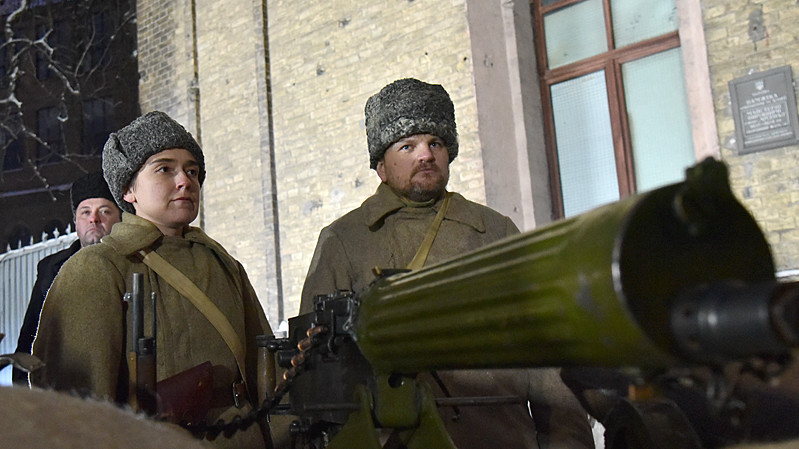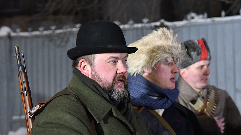 На Арсенальній площі в Києві ввечері в неділю, 27 січня, відбулася реконструкція бою за завод "Арсенал" між військами Української Народної Республіки і більшовицькими заколотниками. Реконструктори відтворили події кінця січня 1918 року, коли українські бійців взяли штурмом головний оплот більшовиків у столиці.