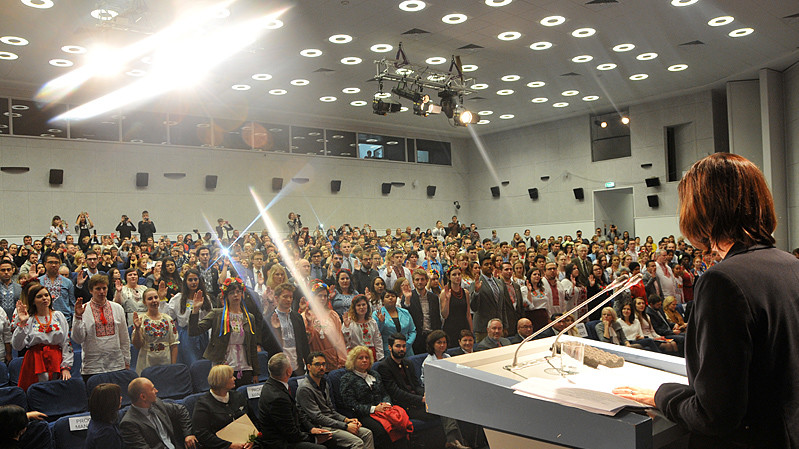 В Києві були урочисто приведені до присяги 135 нових волонтерів Корпусу миру США. Вже 26 жовтня вони відправляться до своїх місць служби, де протягом двох років працюватимуть у середніх школах та вищих навчальних закладах, органах місцевого самоврядування, громадських організаціях, молодіжних та соціальних центрах. Корпус миру США в Україні повертається до Харківської та Херсонської областей, розміщуючи там волонтерів вперше після Революції Гідності.