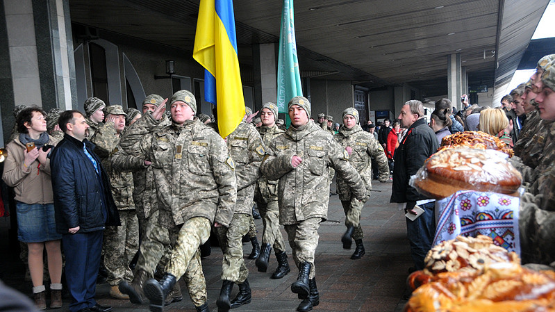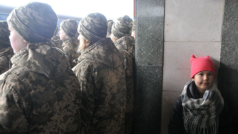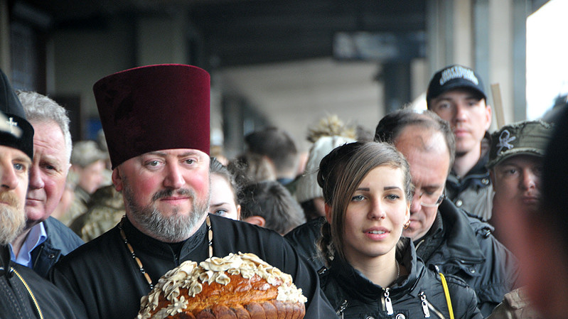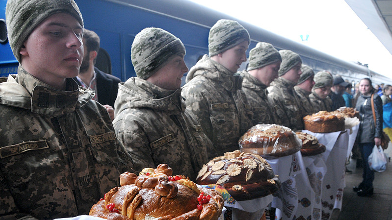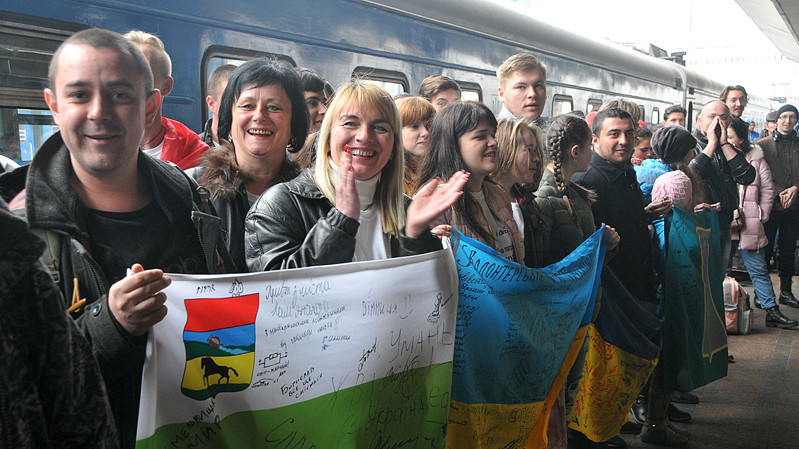На залізничному вокзалі Києва відбулося урочисте прибуття на кінцеву станцію п'ятого поїзда Єднання України "Труханівська Січ". Склад прибув до столиці о 9:00 п'ятниці, 24 березня.