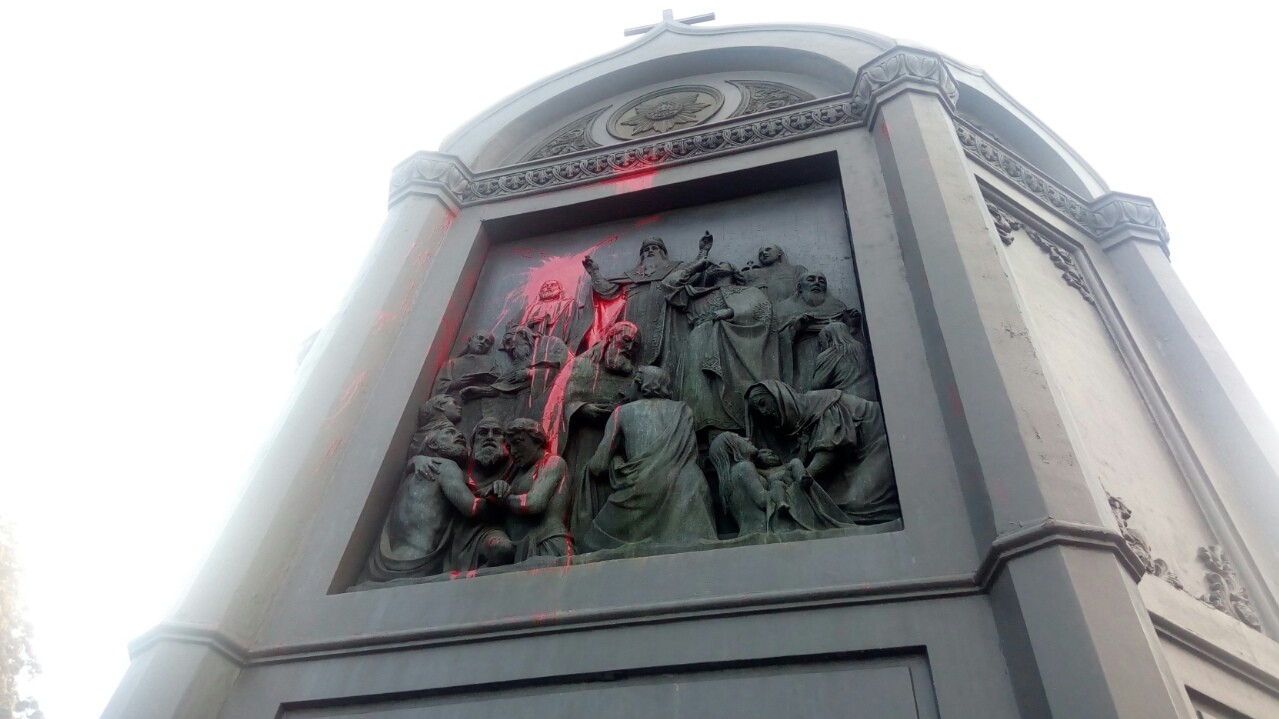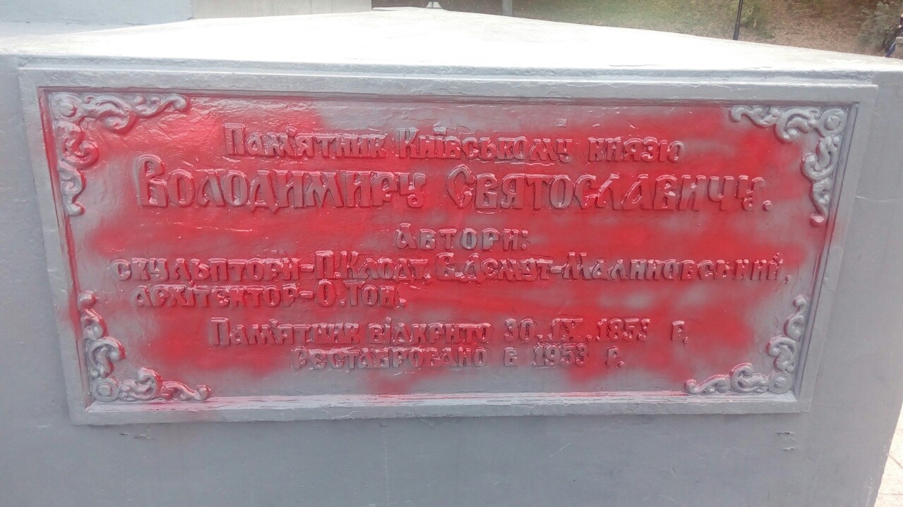 У Києві невідомі облили червоною фарбою пам'ятник Володимиру Великому на Володимирській гірці. До місця події викликали правоохоронців, працювала оперативно-слідча група.