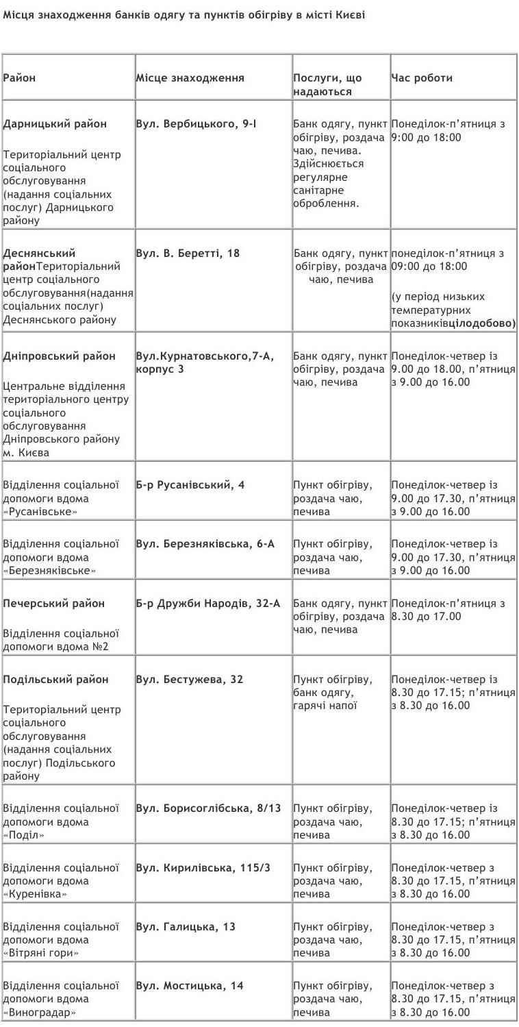 У столиці 20 пунктів обігріву, організовані Департаментом соціальної політики, готові прийняти всіх, хто потребує допомоги, повідомив перший заступник голови КМДА Микола Поворозник.