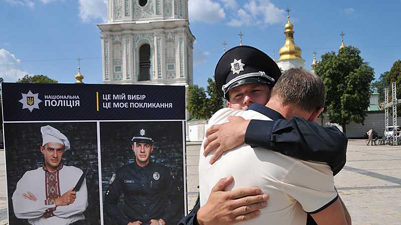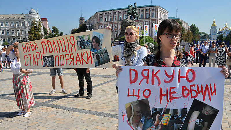 Під час свята поліцейським вручили нагороди і дали нові звання. Однак поряд з місцем проведення офіційних урочистостей пройшла акція людей, незадоволених реформою правоохоронних органів. "Нова поліція - старі порядки", "Спасибі, що не вбили", - такі написи були на плакатах протестувальників.
