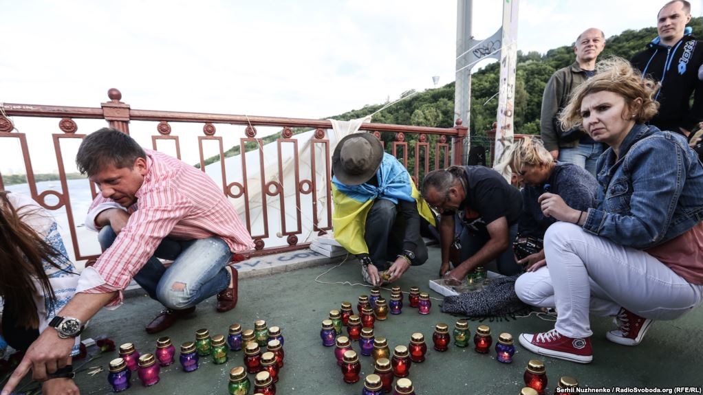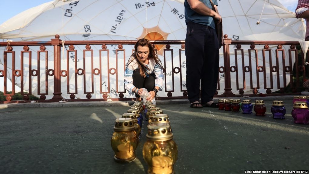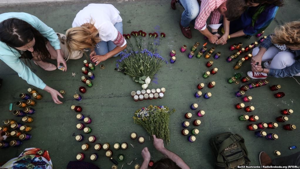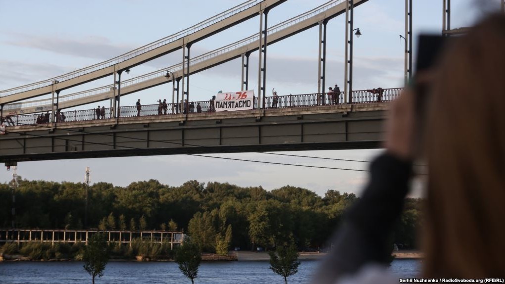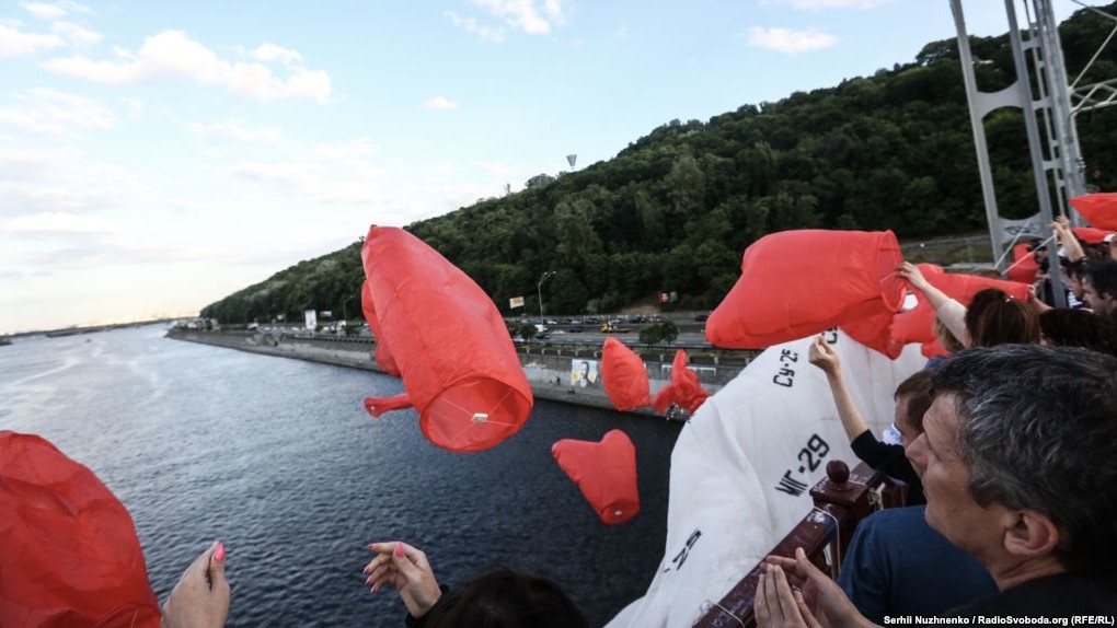 У третю річницю трагедії Іл-76 у Києві на пішохідному мосту над Дніпром пройшла акція вшанування загиблих у небі Донбасу воїнів АТО. Активісти, серед яких були близькі загиблих, розгорнули парашут з назвами літаків та вертольотів, котрі були збиті у 2014 році, запалили свічки та запустили у небо 49 небесних ліхтариків, які символізують 49 загиблих українських військових.