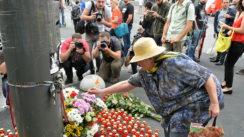 На розі вулиць Богдана Хмельницького та Івана Франка в Києві вранці 20 липня зібралися більше ста людей, щоб вшанувати пам'ять убитого рік тому журналіста Павла Шеремета. Зокрема, прийшли колеги-журналісти, громадські активісти, народні депутати, а також посол США в Україні Марі Йованович. Біля місця, де рік тому вибухнув автомобіль з Шереметом, поклали квіти і запалили свічки. Також на тротуарі був встановлений великий плакат з написом: "Пройшов рік! Хто вбив Павла?". Ще кілька людей тримали банер "#Рік без Павла?"