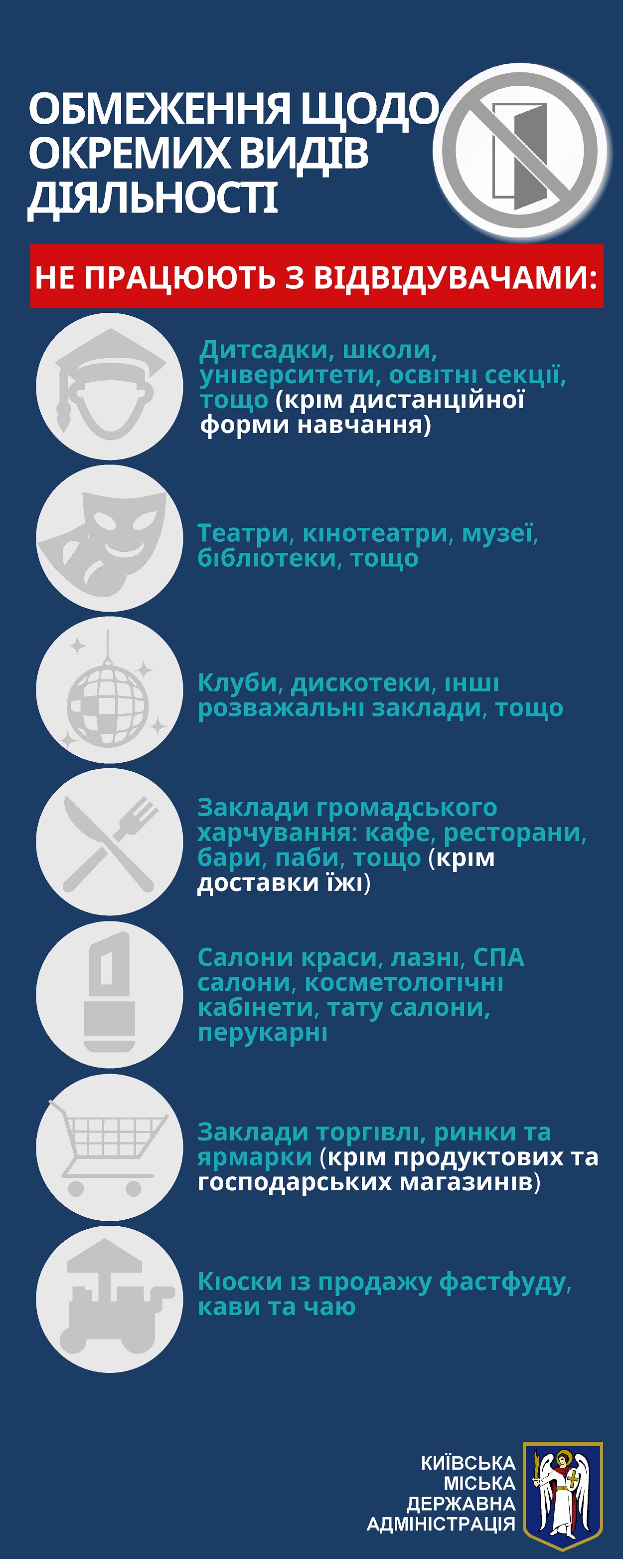 В столиці будуть діяти нові протиепідемічні обмеження. Відповідні зміни зафіксовані у розпорядженні керівника робіт з ліквідації наслідків надзвичайної ситуації.