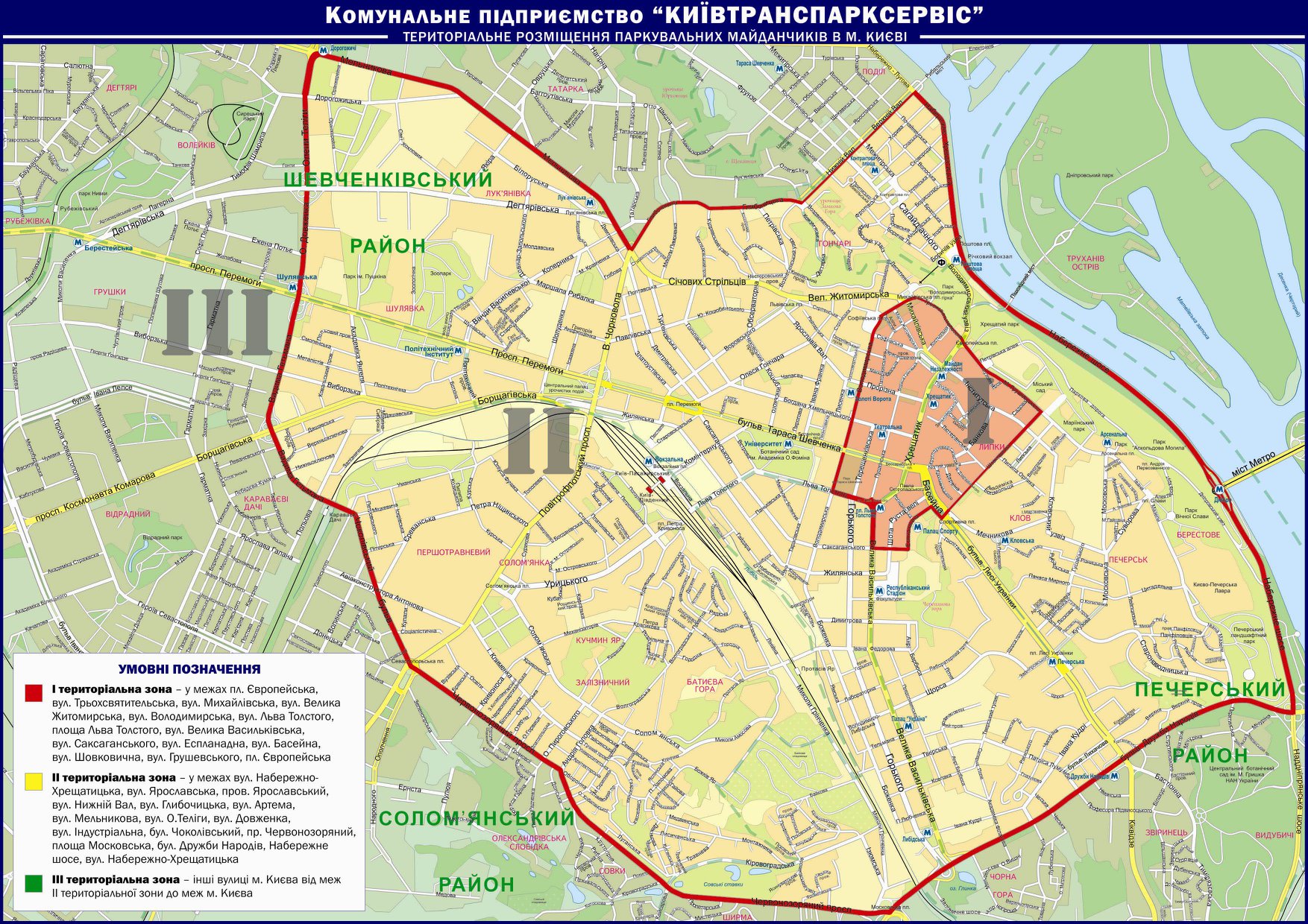За посилання також карта муніципальних, комерційних, безкоштовних та перехоплюючих стоянок для автомобілів, які функціонують у Києві.