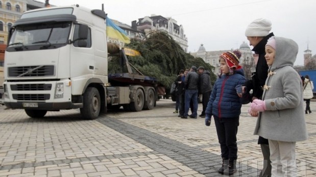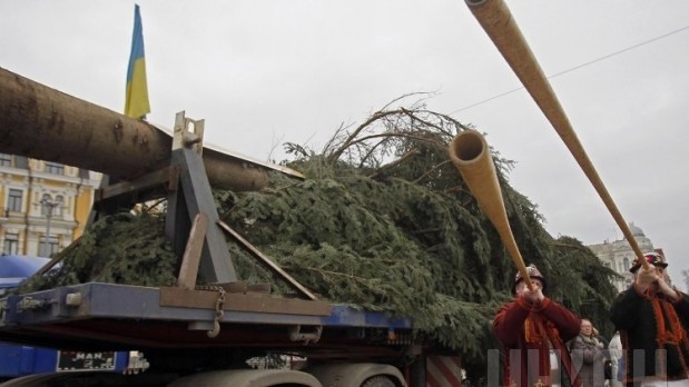 Головну новорічну ялинку України висотою 25 м привезли на Софійську площу Києва з Івано-Франківська. Вдень у суботу, 5 грудня, ялину зустрічали гуцули з трембітами і багато киян і гостей столиці з дітьми.