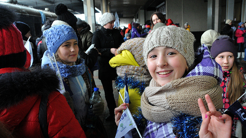Вранці 12 січня в рамках акції "Схід-Захід разом" на залізничний вокзал Києва прибув Потяг Дружби з дітьми з "сірої зони" АТО. У Києві для дітей організували кілька екскурсій, а після столиці 13 січня учасники вже будуть у Львові.