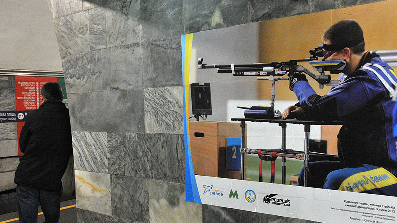 На станції "Олімпійська" київського метрополітену відкрилася виставка фотографій "Чемпіон у кожному". Фотографи Євген Дорошенко і Павло Кубанов підготували знімки з виступів українських паралімпійців в Ріо-де-Жанейро.