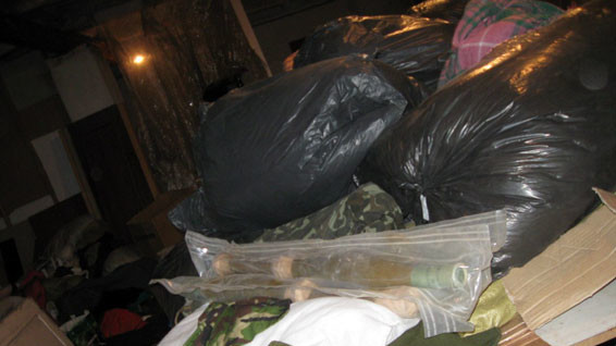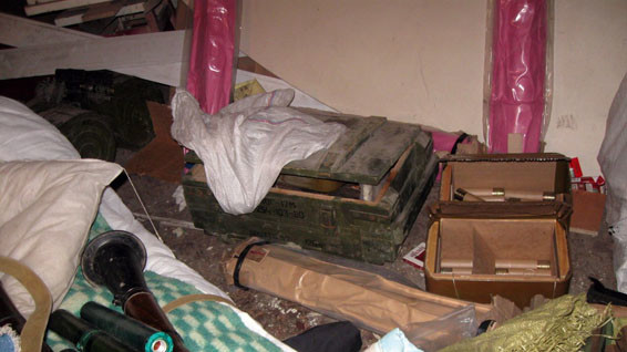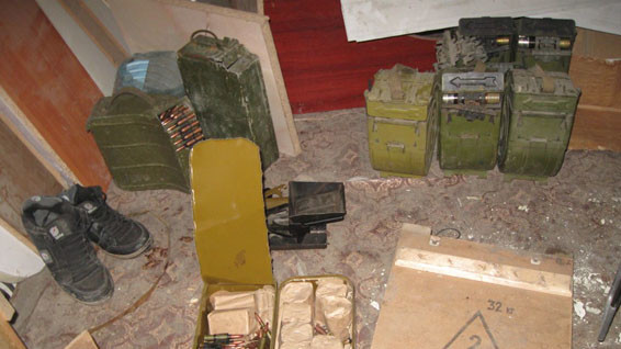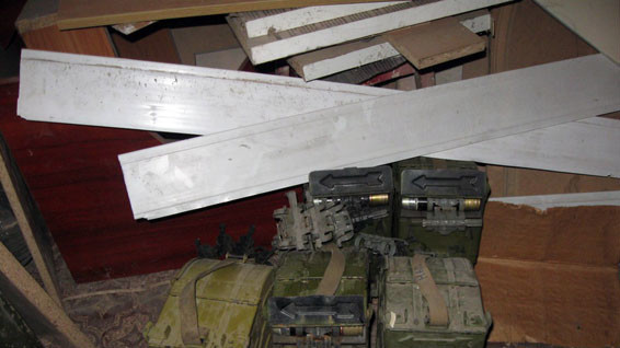 Після подальшої перевірки прилеглій території міліціонери виявили склад зброї. Було вилучено 6 гранатометів, 38 гранат, понад 12 тисяч патронів різного калібру, електродетонатори і боекомплекты.