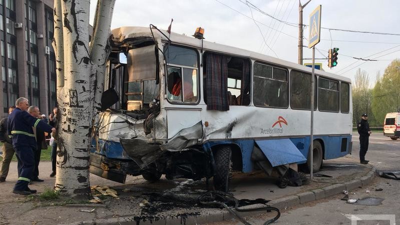 Аварія сталася о 6:00 ранку на перехресті вулиці Героїв АТО і проспекту Металургів. За попередньою інформацією автомобіль Mazda врізався в маршрутку, яка вилетіла на зустрічну смугу і зіткнулася з автобусом, який зазвичай перевозив працівників "Арселорміттал".