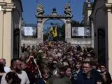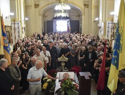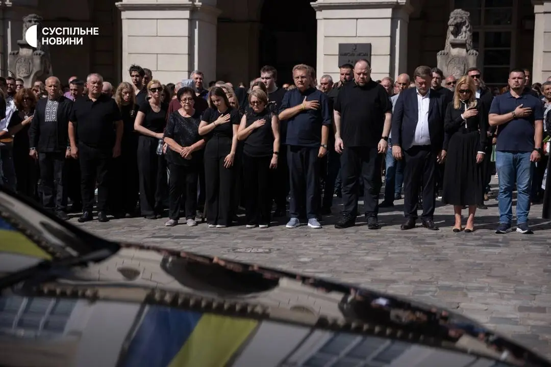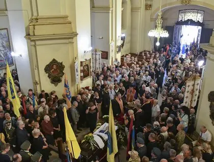 Після завершення літургії у Соборі Святого Юра похоронна процесія вирушила на площу Ринок, де попрощатися із політиком, який свого часу був і депутатом Львівської міської ради, і Львівської обласної ради, прийшли сотні львів’ян.