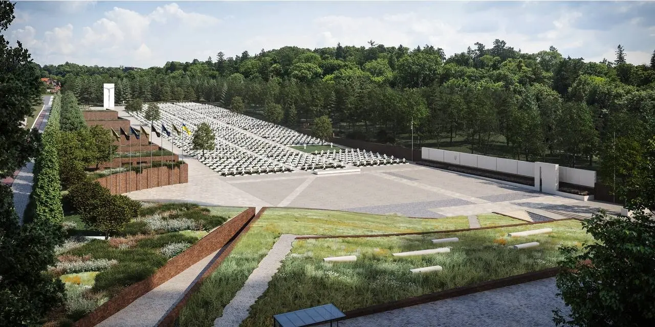 У Львові представили оновлений проєкт меморіалу Героїв України – меморіального комплексу військових поховань на вулиці Мечникова, повідомив міський голова Андрій Садовий. На вході до меморіалу викарбують слова загиблого на війні поета Максима Кривцова: «Коли мене запитають, що таке війна, я без роздуму відповім — імена».