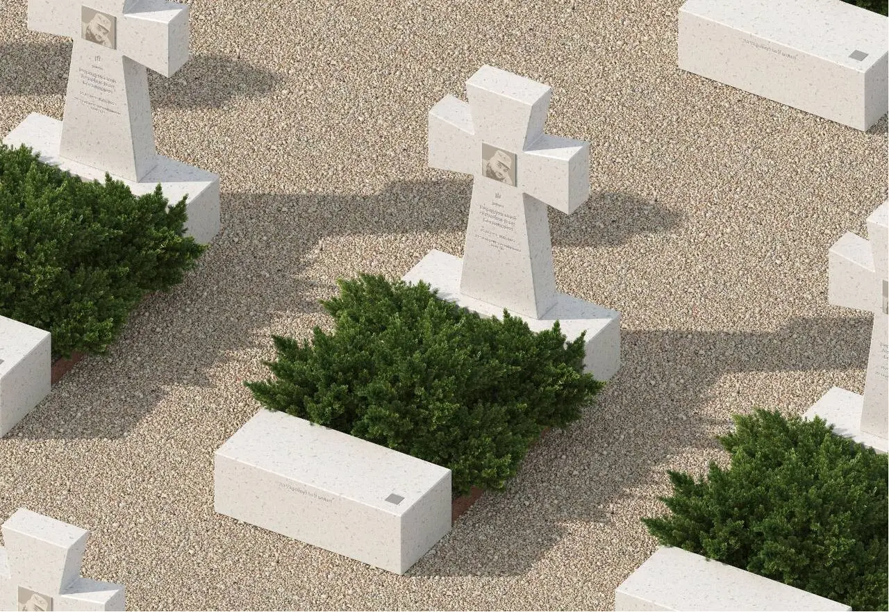 - Стіни памʼяті з іменами та портретами загиблих і тих, кого не вдалося поховати.