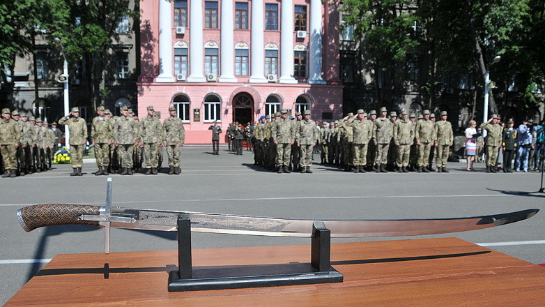 Полковник Андрій Соколов, визнаний кращим слухачем оперативно-стратегічного рівня, був нагороджений перехідною козацькою шаблею 17-го століття.