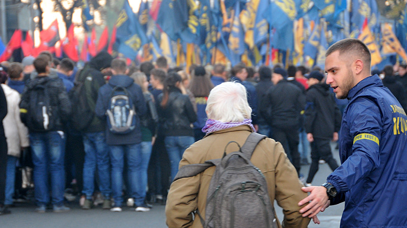 Як повідомлялося, 14 жовтня в Києві і інших містах України відбувся традиційний марш УПА, в якому беруть участь переважно представники націоналістичних організацій. У столиці близько 10 тисяч учасників маршу, присвяченого 76-й річниці створення Української повстанської армії, зібралися о 16:30 біля пам'ятника Тарасу Шевченку. Вони пройшлися вулицею Володимирською, бульваром Шевченка та Хрещатиком до Європейської площі, де розпочався святковий концерт. Під час ходи кількість її учасників суттєво зросла. В охороні заходу були задіяні понад 1000 правоохоронців.