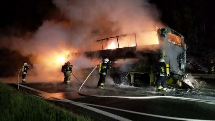 Автобус українського перевізника, що прямував з Києва до Праги, повністю згорів у Польщі. Інцидент стався поблизу міста Альверня на півдні країни в ніч на 26 травня, передає "Європейська правда".