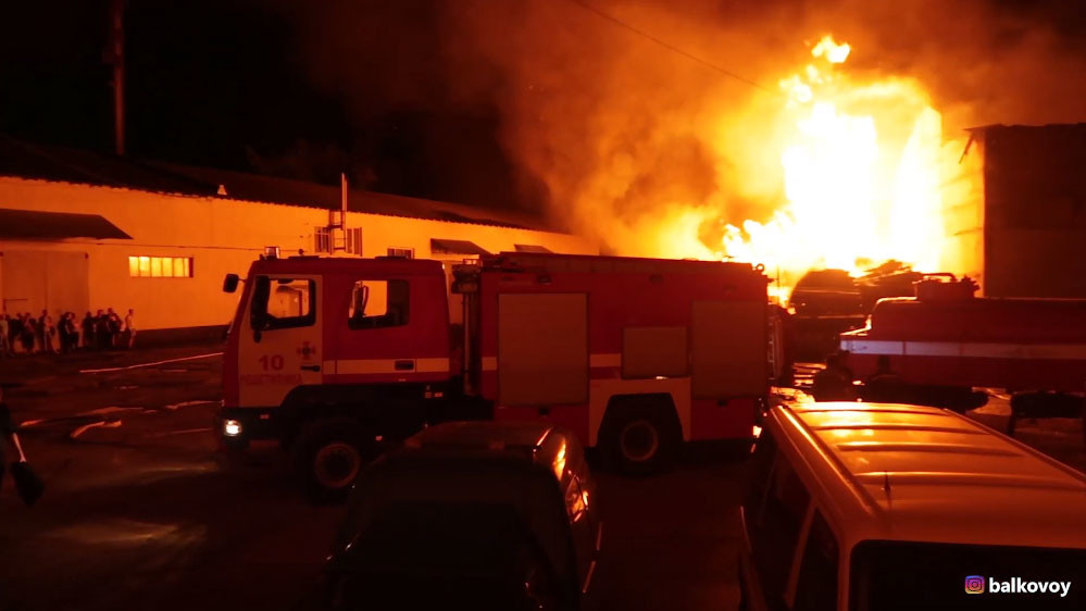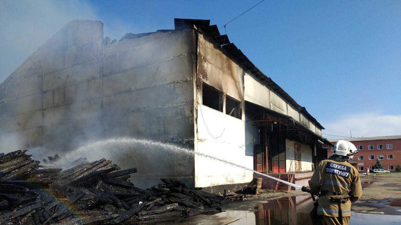 Внаслідок пожежі згоріло приміщення складу на площі 1500 кв. м та майно в ньому. Причина пожежі встановлюються. Травмованих та загиблих внаслідок події немає.